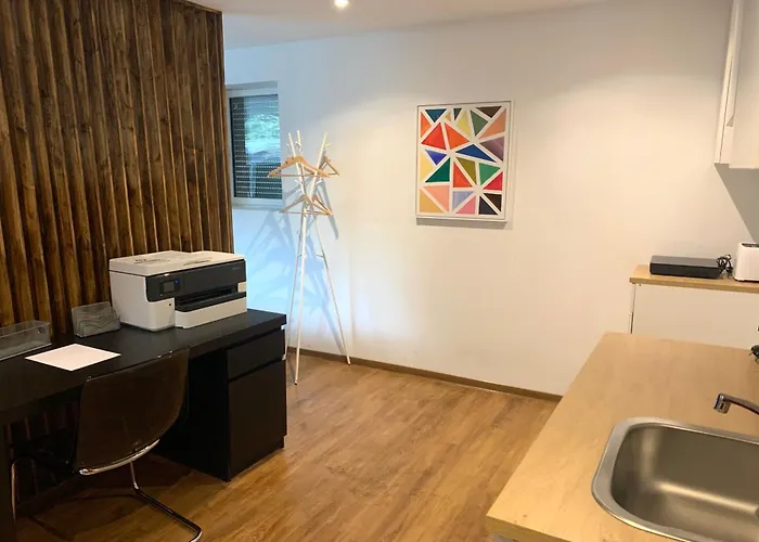 Das 35 m² große Messe Premium Apartment Düsseldorf liegt 4 km weit weg vom Kunstpalast und bietet einen Privatparkplatz für alle, die mit dem Auto anreisen. Das Apartment befindet sich im Bezirk Stockum von Düsseldorf, in einer Entfernung von 15 Autominuten von der Königsallee entfernt.